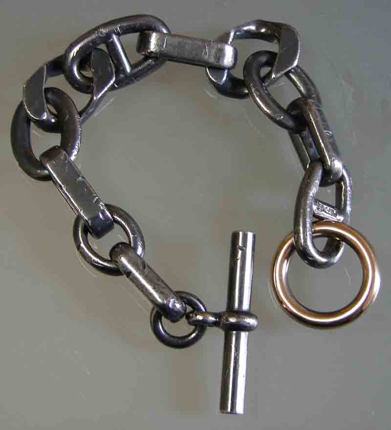 Interestingly, the “tarnish” may originally have been an applied finish, as (paradoxically) the more I wore it, the shinier it got. I quickly restored the tarnish by wearing it in the pool – chlorine did the trick in a few days!