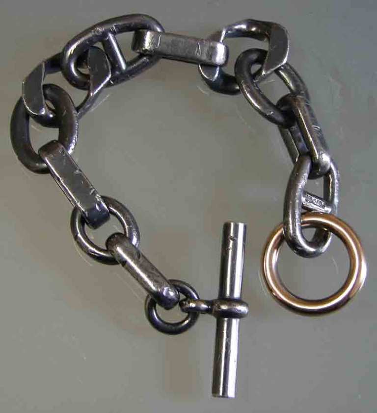 This is a limited edition version of the all sterling silver bracelet made by Hermes. The sterling is distressed and oxidized and the closure is rose gold. I love the rock and roll vibe of this bracelet. It’s pretty in (clean) all sterling as well, just a more refined look. The bracelet features the different links in various Hermes designs. I believe this piece can still be special ordered at Hermes though originally (last year) it was available in the US only.