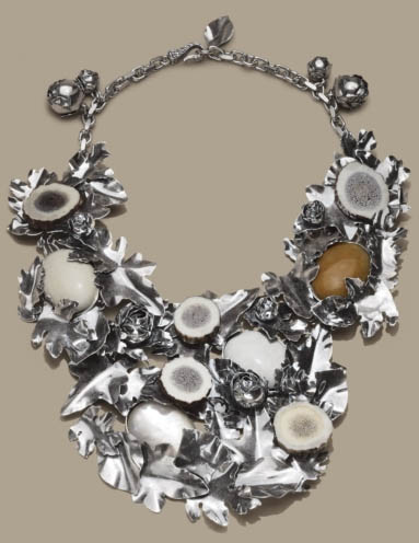 In the past year, Bottega Veneta’s jewellery designs have swung from Victorian inspired cubic zirconia collar necklaces, to fluorescent enamels, to layers of oxidized silver. BV considers this their lower end line; their fine jewellery pieces sell in the mid to high five figures.