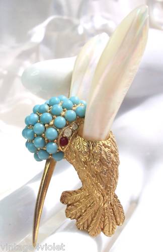 What I really found interesting is that it reminded me of a hummingbird design by costume jeweller Marcel Boucher. However, Boucher began his career in fine jewellery and you can see those influences in this piece. Costume jewellery is often derided for being cheap or “not real” but the inspirations for both real and “fake” jewellery are often so intertwined, it seems unfair to call out faux jewellery in particular.