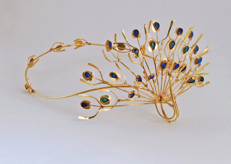 This opal and gold crown is wonderful and you can clearly see the influence of the peacock’s tail that was her inspiration: