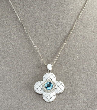 When I spotted this pendant, I immediately thought of the Van Cleep and Arpels Alhambra necklace with its well-known clover motif. Those cost thousands, and this Alhambra-lite look from Jude Frances is made of sterling silver and enamel and semi-precious stones and costs USD $540. Of course, it isn’t an exact look, but if you long for VCA but can’t afford it, this could be a pretty alternative.