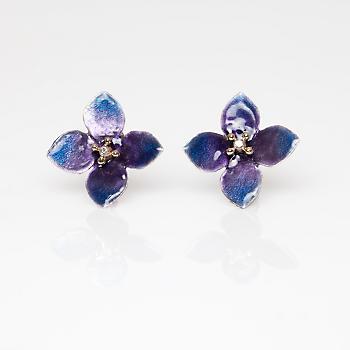 These earrings by Russell Trusso are luminous enamel on 18k set with tiny diamonds. Available in clip or post. USD $950.