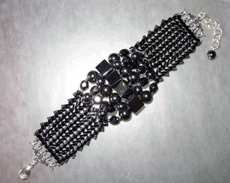 I usually wear several bracelets at once on my left wrist, but prefer one wide cuff or bracelet on my right. (Yes, at the same time. More is more.) This black crystal and bead bracelet by Black Dog Designs has sterling silver findings and is an affordable USD $95. Order online here. The site also offers a range of unique and wearable bridal tiaras and headbands, as well as a line of cameos funked up for modern girls.