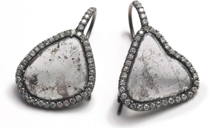 These earrings feature diamond slices set with micropave diamonds. Price available upon request.
