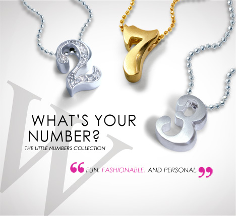 Shown here are her Little Numbers collection; diamond set single numbers are USD $748 and 14k gold only is USD $478. Silver is USD $138. See her collections here.