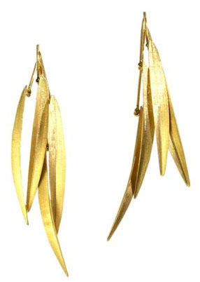Braziliam designer Carla Amorim works in gold and semi-precious materials, often accented by diamonds. The pieces have an airiness and a sense of movement, like these feather earrings in 18k yellow gold. Available for USD $1,575 here. See more on her web site.