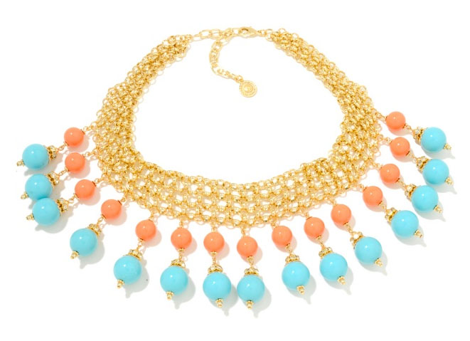 The combination of these two colours is always so bright and lively. Fittingly, designer R.J. Graziano has called this design Costa Del Sol, after the famed Spanish resort area. Available at HSN here for USD $59.95, Graziano’s work is also widely available in department and specialty stores. Earrings matching this necklace are available on HSN for USD $24.95. Maximum impact, minimal price.