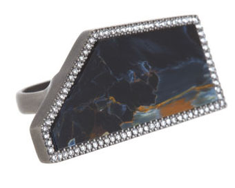 Here she uses pietersite, believed to connect the physical to the spiritual, and to have healing properties. It is set in recycled gold surrounded by micro pave diamonds. Available at Barneys for USD $6180. Find out more about the designer here.