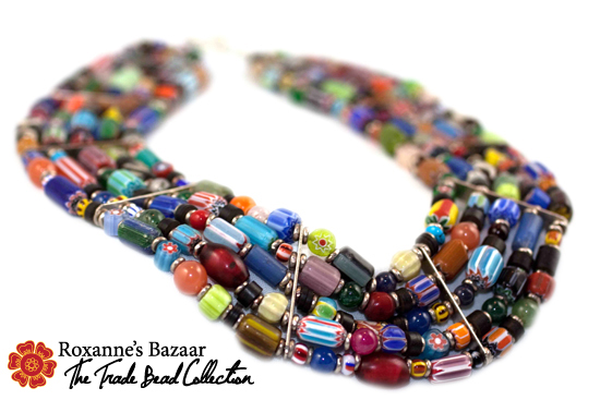 This necklace sells for CDN $299; there are several beautiful items for under $50. Each necklace (and there are trade bead bracelets for CDN $99) is different, depending on the mix of beads used, and it can be purchased here.