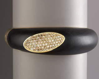 This is a wonderful marriage of diamonds and wood, producing a bracelet that can be worn daily, if the wearer chooses. Coin used recycled ebony, accenting it with 2.30 carats of pave diamonds set into gold plated silver. The cuff is also available in solid gold. This one can be purchased at Bergdorf Goodman for USD $4,500. The all gold version has .10 ct more diamonds, and retails for USD $13,500.