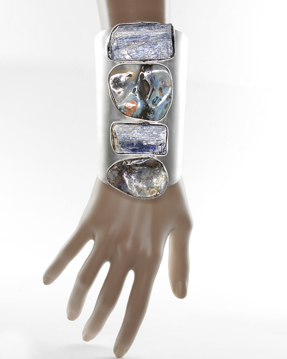 Like this Kyanos cuff, made with opals and kyanite in polished or satin sterling silver. Each cuff is handcrafted and one of a kind. I would personally be happy to receive this one … or the very 2001: A Space Odyssey-ish Star Love Cuff, or the spikey Hedgehog Cuff. Or nearly any of the other pieces on this site. Yum.