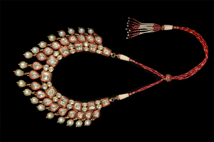 Moghul style Indian jewellery is stunning in its over the top use of gems and colour. This necklace by Loren Jewels, in the designer’s words, “106.8gms 22kt gold, 26.12cts. tw. diamond with 151.5cts pearl”. A really stunning item to own and available for online purchase here for USD $78,320. Loren Jewels also collaborated with Kim Kardashian in case you feel the need to emulate her style.