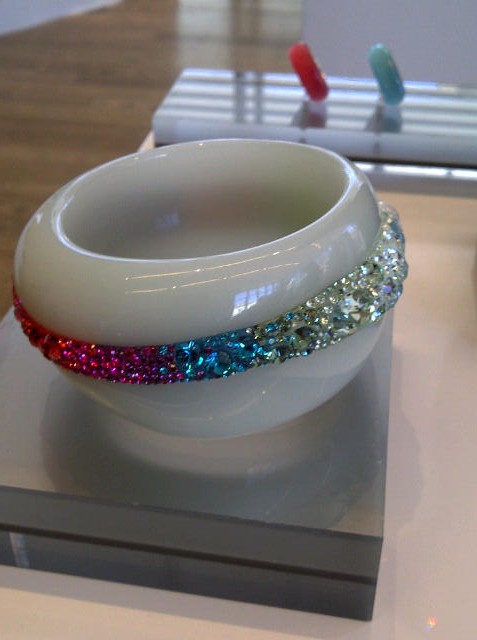 Swarovski did this elegant design earlier this year in a pale blue shade; it is still available for purchase for USD $425 here. It sells for Cdn $500. Given the snow falling across much of the world, I thought it would be nice to take a quick peek into spring. The company is continuing with this design in a different colour way for it’s Wings of Poetry themed spring summer 2011 collection, highlighting the butterfly. (I’ll have other items from the collection coming to you in the coming weeks.)