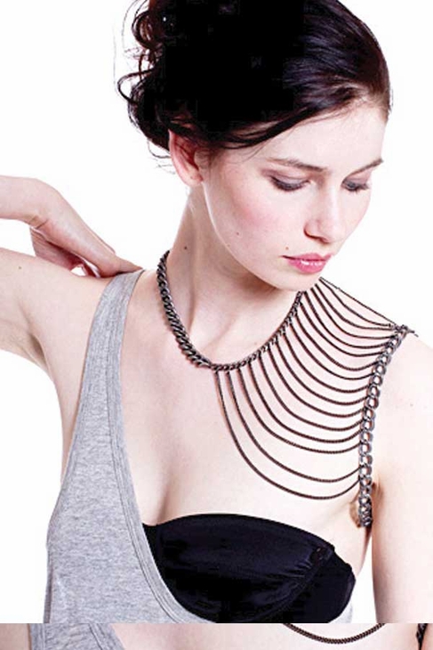 Made of gunmetal coloured pewter chain, you can buy this for USD $299 here. The designer has many other inventive chain pieces, for the adventurously minded among you.