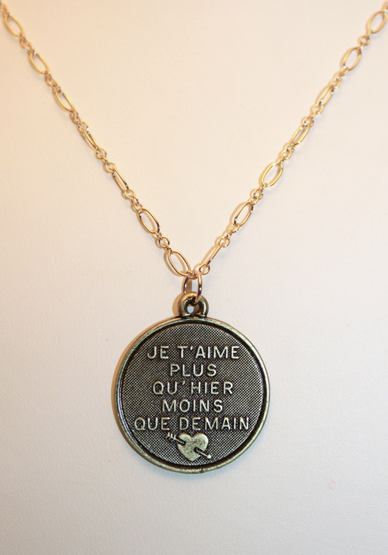 When I was growing up (and we won’t go into when that was, exactly…!) these pendants were really common. The saying, “Je t’aime plus que hier, moins que demain” often came with a gem set plus and minus sign. I’ve also seen them breakable into two halves for lovers to share. If you haven’t seen these, it means “I love you more than yesterday, less than tomorrow”…