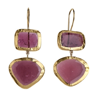 Designer Nava Zahavi refers to Byzantine characteristics she incorporates into her jewelry, and I think the settings and stone shapes in these pretty earrings show those influences. Made with tourmaline and wrapped with 24k gold wire, the play of the lush deep pink against the gold is bold and modern. These sell for USD $1200 on Zahavi’s site and appear to be one of a kind.
