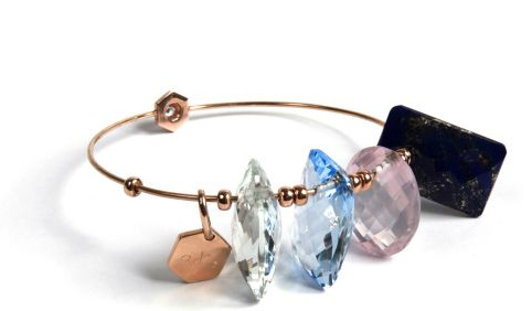 She comes by her rock pedigree honestly, as the ex-wife of Foreigner performer Mick Jones. Her web site lists stores where she can be bought; this bracelet can be purchased from France’s Colette. Made with large pieces of quartz, lapis and topaz and strung on yellow gold, it retails for 4770 Euro (less if VAT is removed). Dexter-Jones is a reiki master and reportedly cleanses pieces of negative energy… perhaps an overenthusiastic scrubbing made the line itself go “poof!”