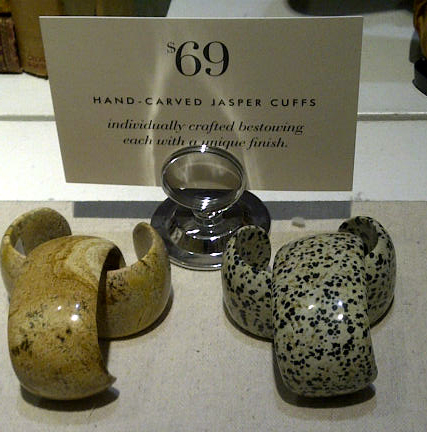 It seems as though Club Monaco’s spring 2011 inspiration is primarily other design houses – silk twill headbands like the Hermes twilleys, ladylike bags and shoppers like Hermes’s Constance and Celine’s cabas tote. Nestled in among the jewellery were these pretty jasper cuffs. Cool and contemporary they don’t reference anyone else but add a nice bit of neutral punch to a summer outfit. Available for Cdn $69.