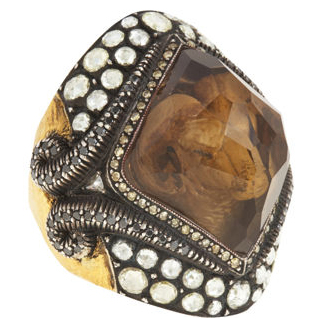 Crafted in 24k yellow gold and sterling silver, set with a hand-carved smoky quartz and white, black and yellow diamonds, it has a face width of 25mm. Available at Barneys for USD $31,585.