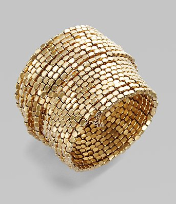 Bangles can be fun and a great look but if you spend all day in front of a keyboard, the movement and noise could drive you slightly mad. This coil wrap bracelet by ABS offers all the look of a row of gold bangles without the sounds effects. Made with faux gold beads and available for USD $150.