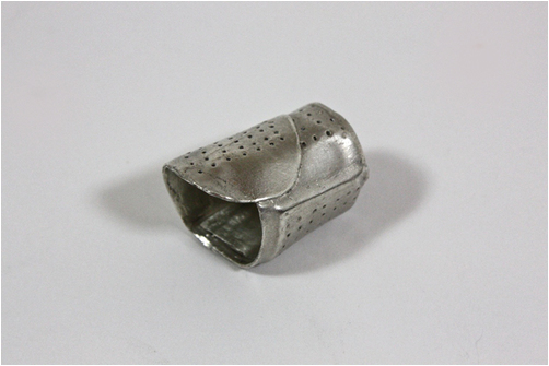 As with much of Lopez’ work, these rings re-contextualize the subject to debunk its common use and create a new entity. Like a thimble, Band-Aid Rings guard their user against injury and are a witty comment for the accident-prone user.