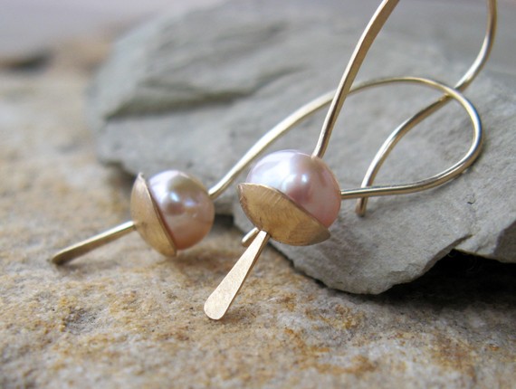 Utah based Etsy sellers The Silver Pearl have some interesting handcrafted jewellery with a definite mechanical influence. These are somewhat softer in appearance, with a pink hued pearl on a 14k gold wire and setting. Available for USD $189 here.