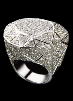 She has several designs produced by venerable Brazilian jewellers H. Stern. Here, her aptly named Power ring, 18k pave set with diamonds. Price upon request.