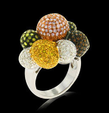 Made with an assortment of natural fancy coloured diamonds set in white gold, this Paradise ring is part of Sethi Couture’s Beads of Paradise collection. Consult her web site to see online retailers, including Fragments and Ylang23. The price was not noted on Sethi’s web site.