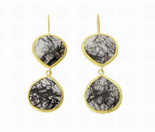 With the price of gold continuing to soar, finding the look of fine jewellery without a really high price tag is always nice. These gold plated sterling earrings set with rose cut rutillated quartz offer the look of fine at a reasonable cost. Available from Ylang23 for USD $350.