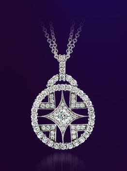 Renowned for the cut of their diamonds, Hearts on Fire offers more than engagement rings. This Elation pendant, set with 1.5 carats of diamonds set in 18k white gold, is strung on a double cable chain. It’s available for USD $8450.