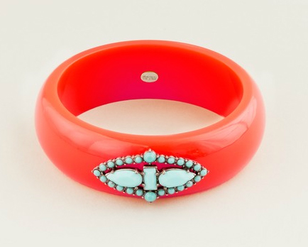 Jewellery designer Lulu Frost has collaborated with J. Crew before; this is one of a series of deco style resin cuffs in bright colours and fun crystal accents. These would look great stacked (and come in different widths, for eye appeal). This one is USD $68.