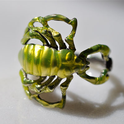 Bottega Veneta used scarabs and scorpions as their theme last fall, and their jewellery (mostly sterling silver and enamel, too) was in the thousands. This is USD $895. There is a gold and diamond version on the splash page for the web site, but I was unable to locate it on the site. It was stunning.