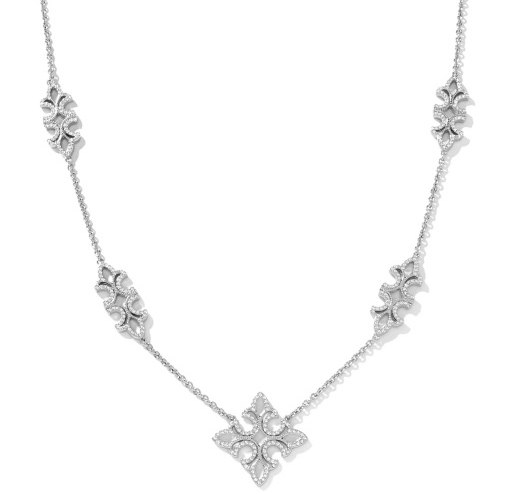 This crystal pave necklace made (we think) in base metal, is still on the pricey side for something not even made in sterling silver – USD $129.95. But considering it’s probably about a tenth of what her fine jewellery pieces go for, it could still be the bargain for you.