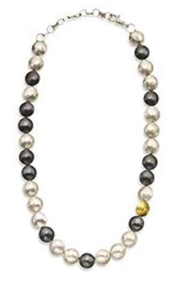 Here, Gurhan uses a mix of 24k yellow gold (well, one bead), polished and oxidized sterling silver. The result is a really pretty mix, due to texture and colour. Length is not indicated on Harrod’s site, so it might be worth enquiring. Price is £899.00.
