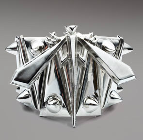 Eddie Borgo’s last few seasons have featured mixtures of leather and studs and the rock and roll sensibility he favours. This cuff bracelet takes what is a commonly found Art Nouveau motif, the dragonfly, and butches it up on a studded cuff. Made of silver plated brass, the bracelet sells for USD $750 at Bergdorf Goodman.