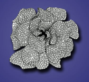 The lush exuberance of this brooch is really appealing; interesting that it is set in titanium. I’ve noticed a trend lately towards the use of alternatives to gold and platinum, including palladium and aluminum. (Interesting factoid about titanium: it was named for the Greek mythological Titans and has the strongest strength to weight ratio of any metal).