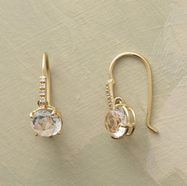 Love sparkle but hate the soaring price of fine jewellery? Suzanne Kalan offers these lovely diamond and white topaz earrings on a French wire. Set in 18k in a pretty open work setting, they are USD $598 at Sundance Catalog.