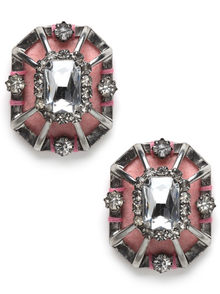 These pretty (and large – 2.35 inches long) earrings are made of crystel, resin and rhodium plated brass, and are indeed a lite indulgence at USD $58.