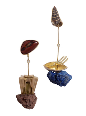 Some day, there may come a time when you need a pair of earrings that are inspired by the salt cellars of Cellini. And if so, you will not be lacking, for Italian jeweller Francesca Antonello has this pair to offer you. She doesn’t say what they are made of, but they look like gold, diamonds and at least lapis lazuli – very Alexander Calder. See more of her work on her site.