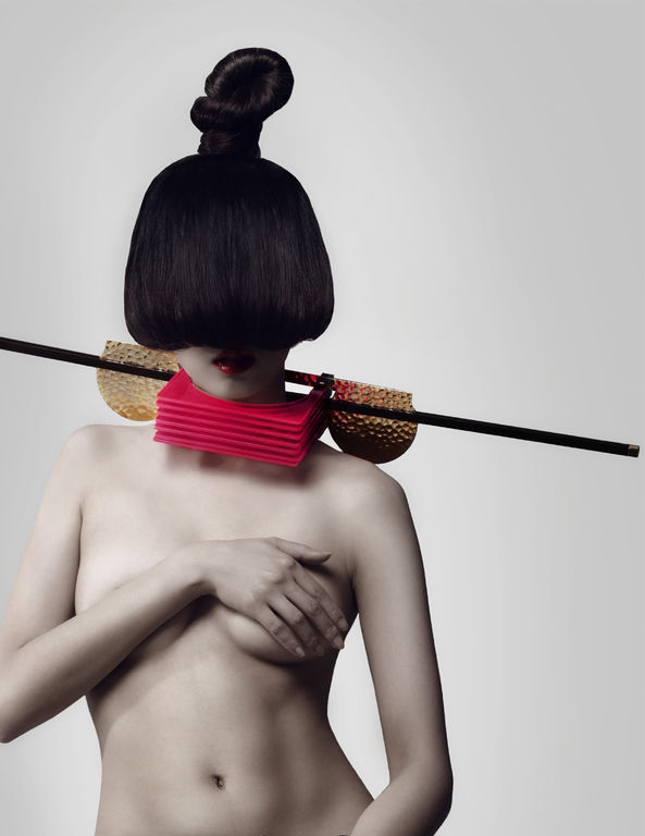 Octavia Xiaozi Yang created the Joinery for Jewels collection as her Master’s project for the London College of Fashion. It is inspired by the Asian art of joinery, putting two pieces together without the aid of metal, glue or pins. The designer notes, “With the refining of Asian elements and the combination of different materials, the aim is to show the thoughts of Yin and Yang that the reverse only exists in balance of relationship to each other. Furthermore, the Designer expected to show there can be no force between the human beings and environment. Each part of jewellery can be removable by the smart construction which help extending the service life of fashion by changing the components for repairing or latest trend of color and textile. In this collection, traditional hand-made and modern technique are both involved, like silversmith, 3D print and laser cutting.”