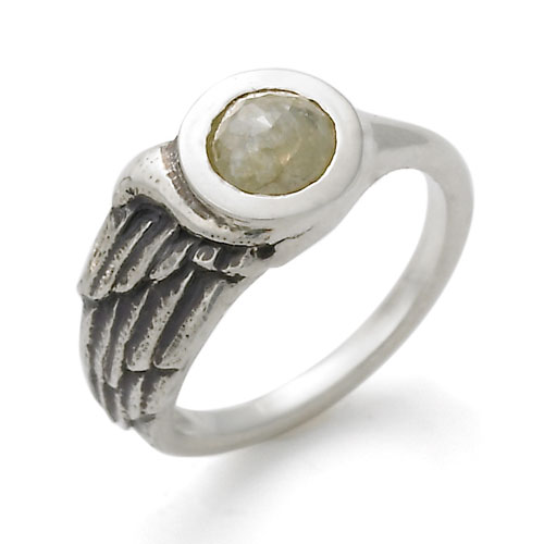 There is no doubt when looking at Jeanine Payer’s pieces that the work has been touched by an artisan, and not machine made. Her work is known more for the engraved poems and sayings she incorporates, and less for the use of stones, but this ring (dubbed Winged Embrace) features a wing and a bezel set round coloured diamond, .85 points. The sterling silver setting lends itself well to the colour of the stone and overall look of the piece.