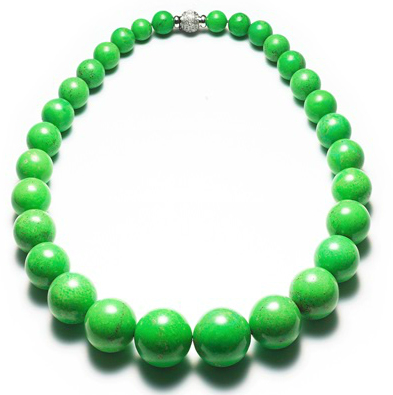 This gorgeous and vibrant green turquoise graduated bead necklace has a diamond clasp set in rhodium plated 18k gold. Founded in France in 1835, Henri J. Sillam is based in Vienna and has shops there as well as in Salzburg, Beverly Hills, Hong Kong, Paris. Ecommerce is coming to their site soon, but for now, you can only browse the eye candy.