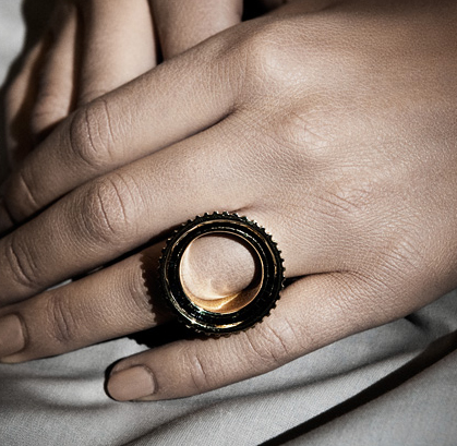 The star piece from the collection ‘Vincent’, this is without doubt, a show stopper. This ring toys with a traditional jewellery concept, subverting it to leave an incredibly elegant piece of jewellery, provocative in its detail. Referencing Russian monumentalist architecture, and early 20th century gentleman’s accessories, this ring perfectly balances beauty and strength, whilst also expertly suggesting a dark underworld of London. Reinventing the traditional sovereign, Hannah carefully contrasts yellow gold and dark blue sapphires in this piece. Made to strict limited edition, this prime example of Hannah’s vision in fine jewellery has a sophisticated twist, telling many a tale.