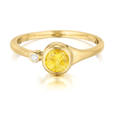 Carelle has designed an array of rings with different gems that can be worn individually, but are meant to be worn stacked. This pretty yellow sapphire and diamond ring would look great on its own (it would also make a pretty and different engagement ring); it is set in 18k yellow gold with a 5mm sapphire and a diamond weighing .02 carats. Retails for USD $890 and can be purchased on the Carelle site.