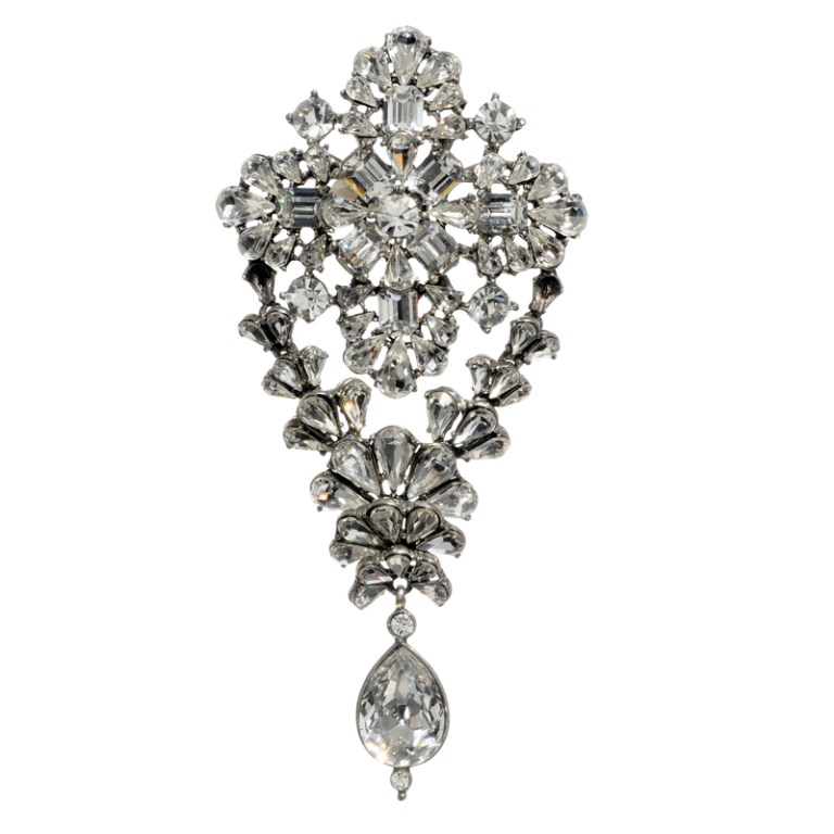 More is definitely more for me when it comes to pins and this 4-1/2 inch long crystal pin by Ben-Amun does not disappoint. Made with findings in an antiqued silver pewter and Swarovski crystal, this sells for USD $420 on Ben-Amun’s web site.