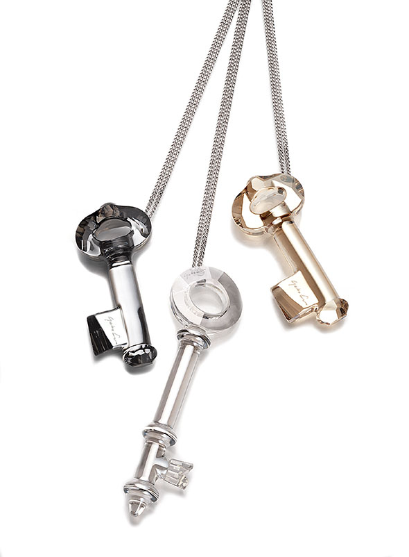 I have never thought of Yoko Ono and jewellery in the same sentence, but she has partnered with Swarovski on a line of limited edition, key-themed pieces. These appear to be available strictly at Swarovski’s Crystallized Concept shop in New York, and on the Swarovski Elements web site. The collection includes the key pendants below, a necklace, bracelet and rings. However, these are noted as being “inspired by” the Ono pieces; the limited edition $350 key pendant is shown as out of stock. (If you are as tired as I am of limited edition everything, please raise your virtual hand…)
