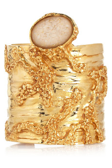 Back to the regularly scheduled jewel post. The Arty design has been a huge hit for YSL (sorry, Saint Laurent) and this iteration takes the large oval cabochon stone and sets it above a textured gold tone cuff. Fortunately, it is easily accessible at the Net-A-Porter site, where it may be purchased for USD $640. Three cheers for clarity in web design.
