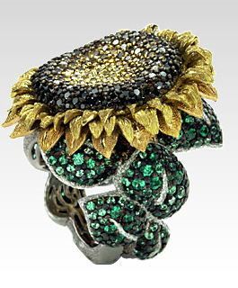 No details on this beautiful sunflower ring, part of his haute couture range, but you can contact the designer through his website for information and pricing.