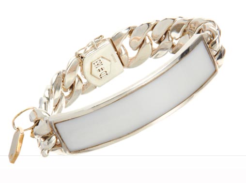 Ann Dexter-Jones is a multi-hyphenate: wife (of Foreigner guitarist Mick Jones); mother (to the Ronson brood, well known for their tabloid antics) and jewellery designer. Here, she offers a riff on the classic ID bracelet. This iteration is rendered in white onyx and sterling silver and will set you back USD $2,800 at Barneys. Rock on!